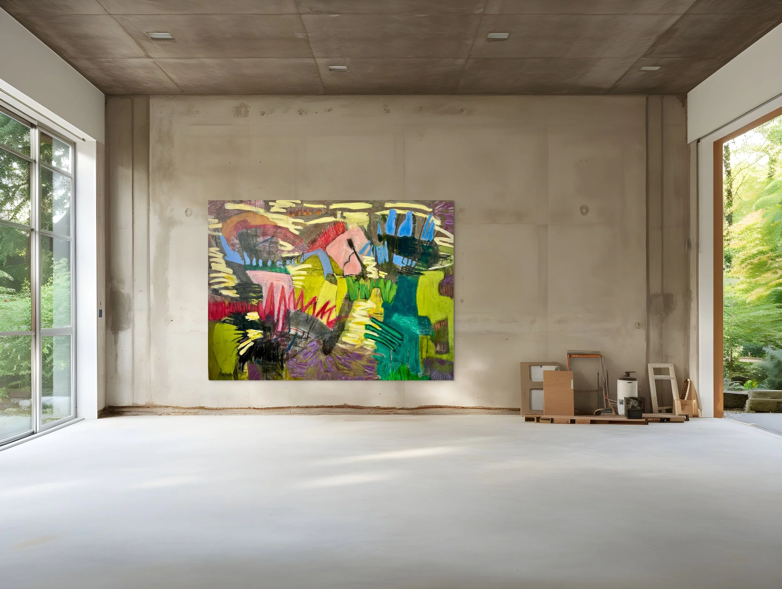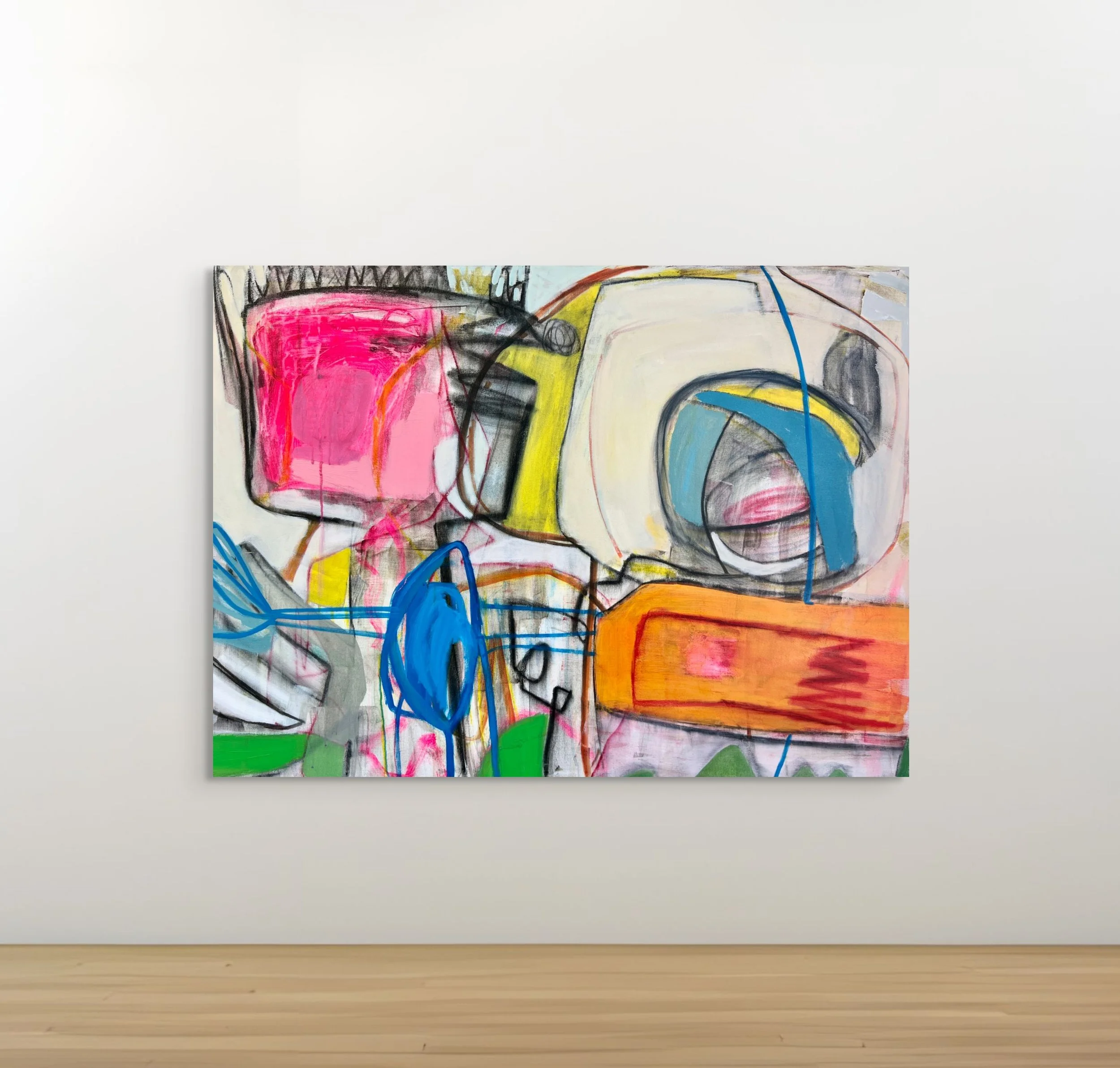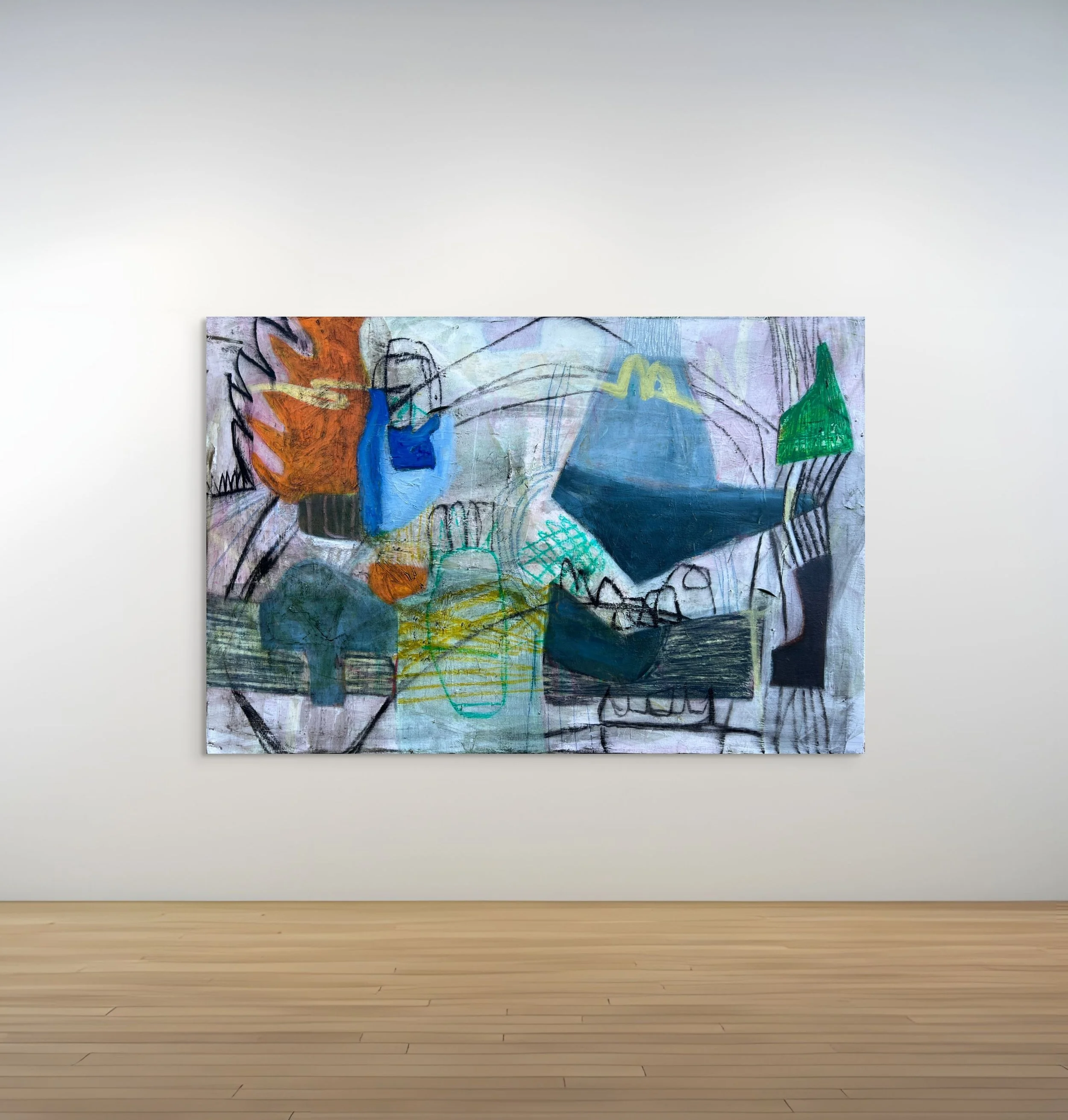 Living Room. 2025. Mixed media on canvas - 36” x 48”