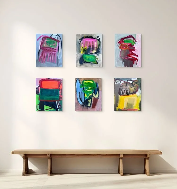 Portrait Gallery. 2025. Mixed media on canvas- 20” x 16” each of 6